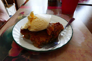 We spent the day with our children and my husband's parents to celebrate my husband's birthday. Dessert options were chocolate satin pie and peach cobbler a la mode. After a lunch of barbecue and all the sides, dessert wasn't necessary, but it was definitely a bonus.